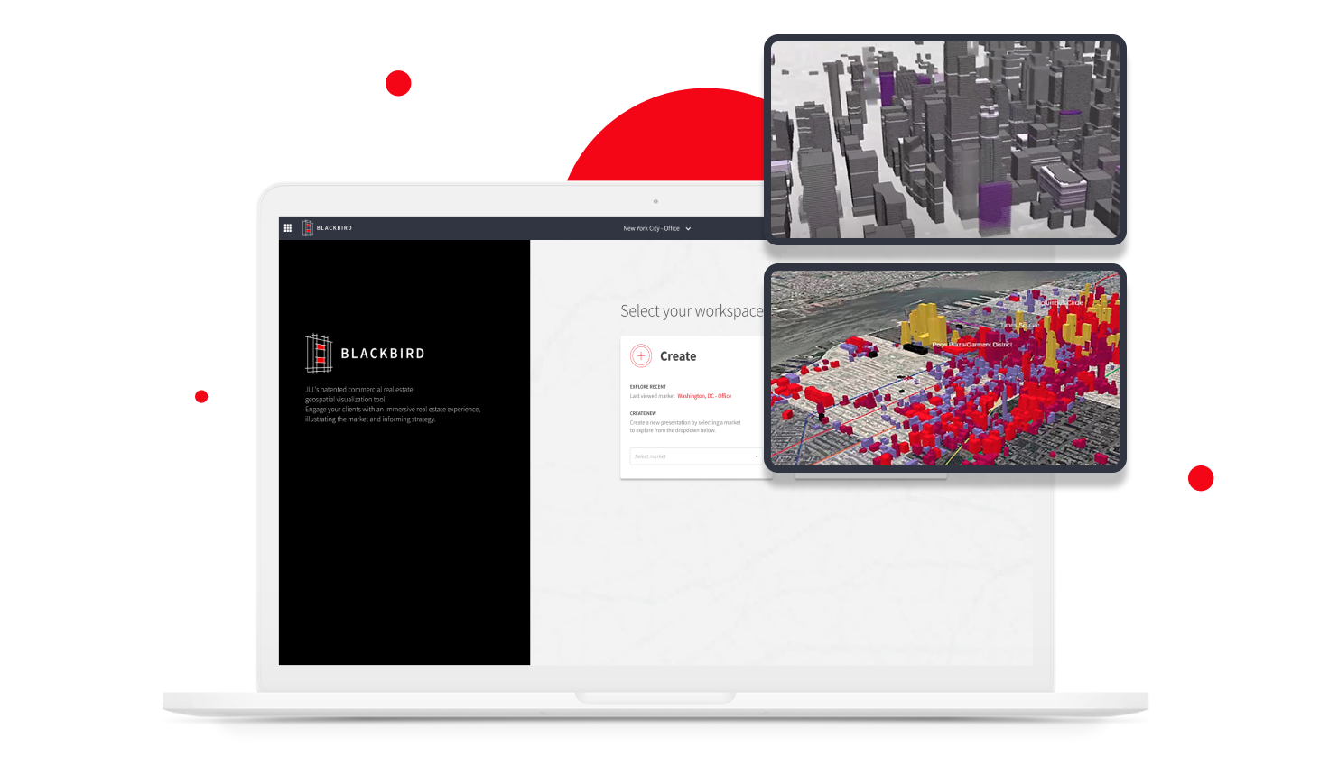 The improved Blackbird enables a patented 3D approach for brokers to help clients explore property options across the country to gain a more complete sense of a property's attributes without the time and cost of an onsite physical inspection. Users can assess potential markets based on real-time market data like demographics, tax incentives, and access to transit. It even showed details on current construction projects to highlight what a property would have. The solution ensured that brokers, researchers, and clients could all easily organize the robust information they needed in a logical and engaging way.